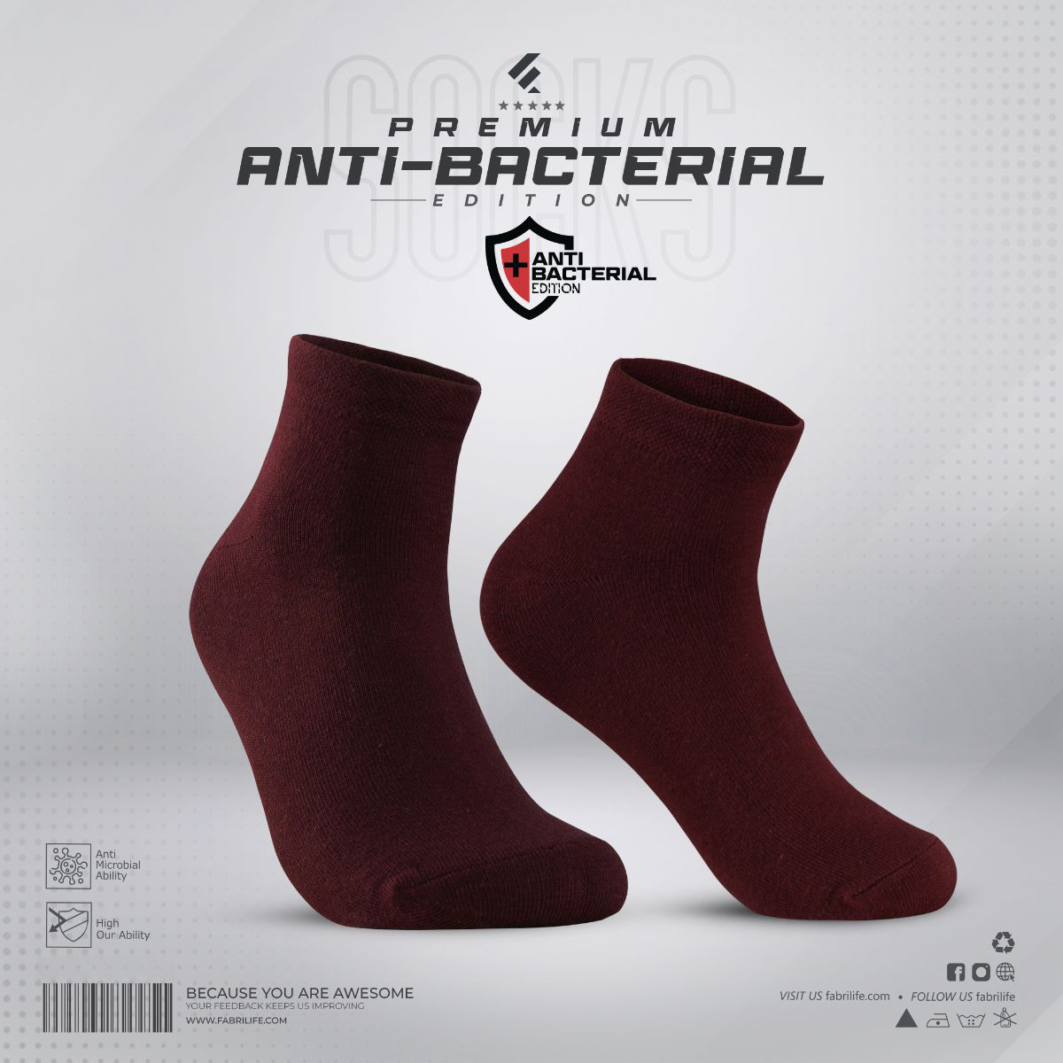 The best quality sock you can find in Bangladesh contains 75% 2 Ply Combed Cotton and 25% Nylon Spandex with antibacterial coating.